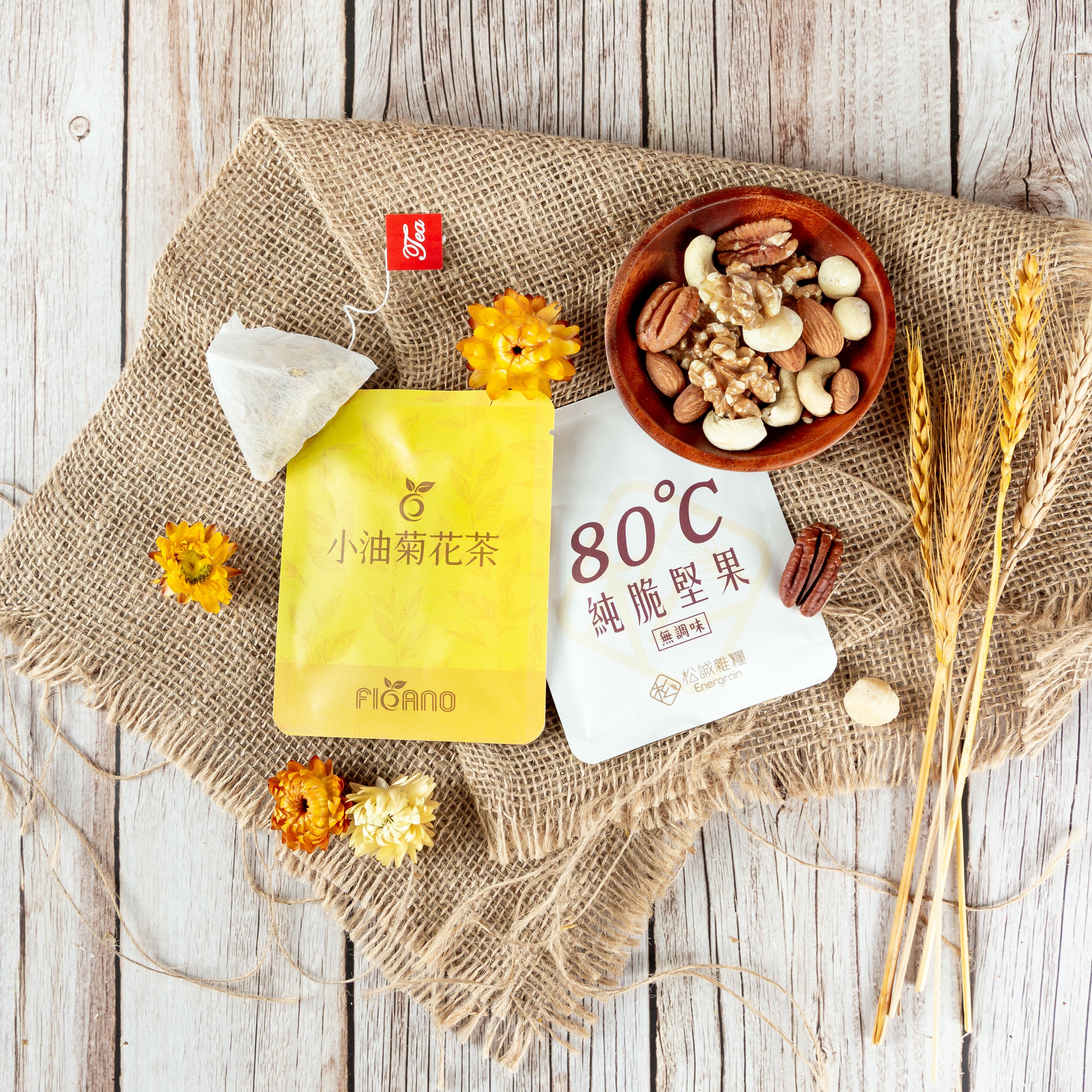 相聚聊天時刻,吃吃健康的堅果 配上一杯 小油菊黑豆草本茶