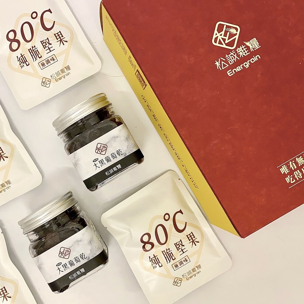 這份【紅福齊天_堅果禮盒】,整體的「海藻紅」禮盒設計,搭配燙金的logo標誌