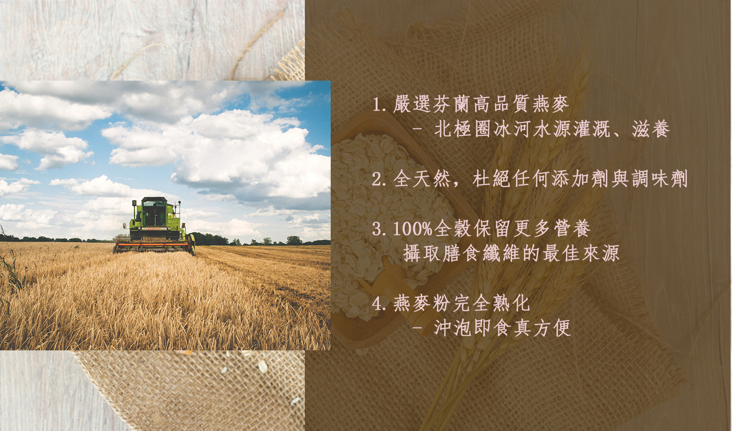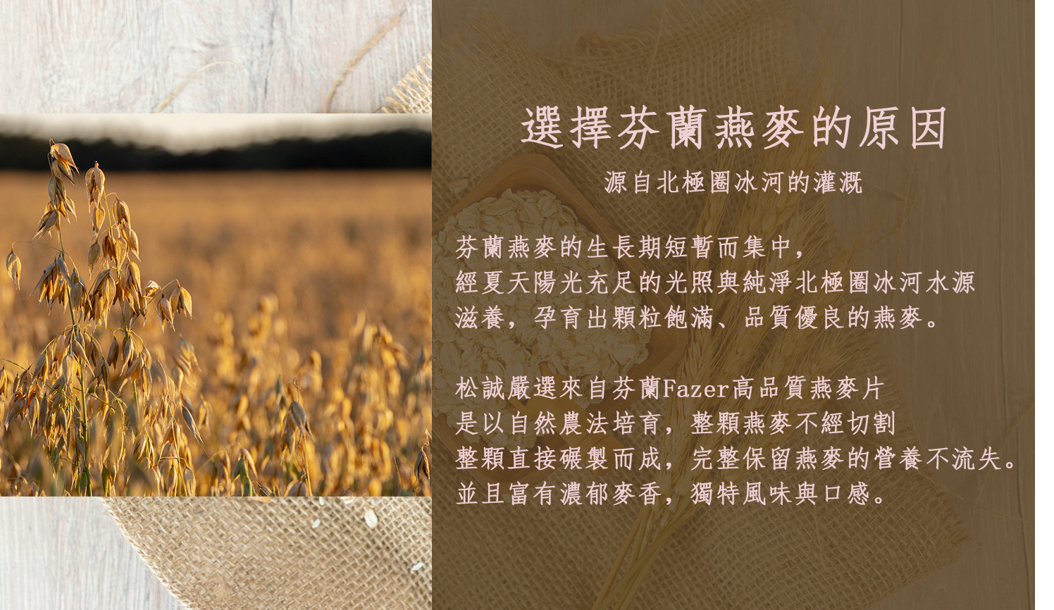 嚴選北歐芬蘭燕麥,獨家蒸氣熟化技術,整顆燕麥直接碾壓、研製而成。
