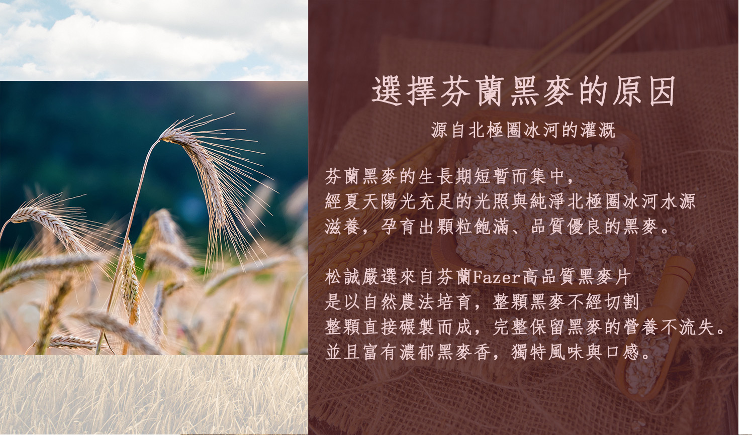 松誠嚴選來自芬蘭Fazer 高品質燕麥片,完整保留黑麥的營養不流失